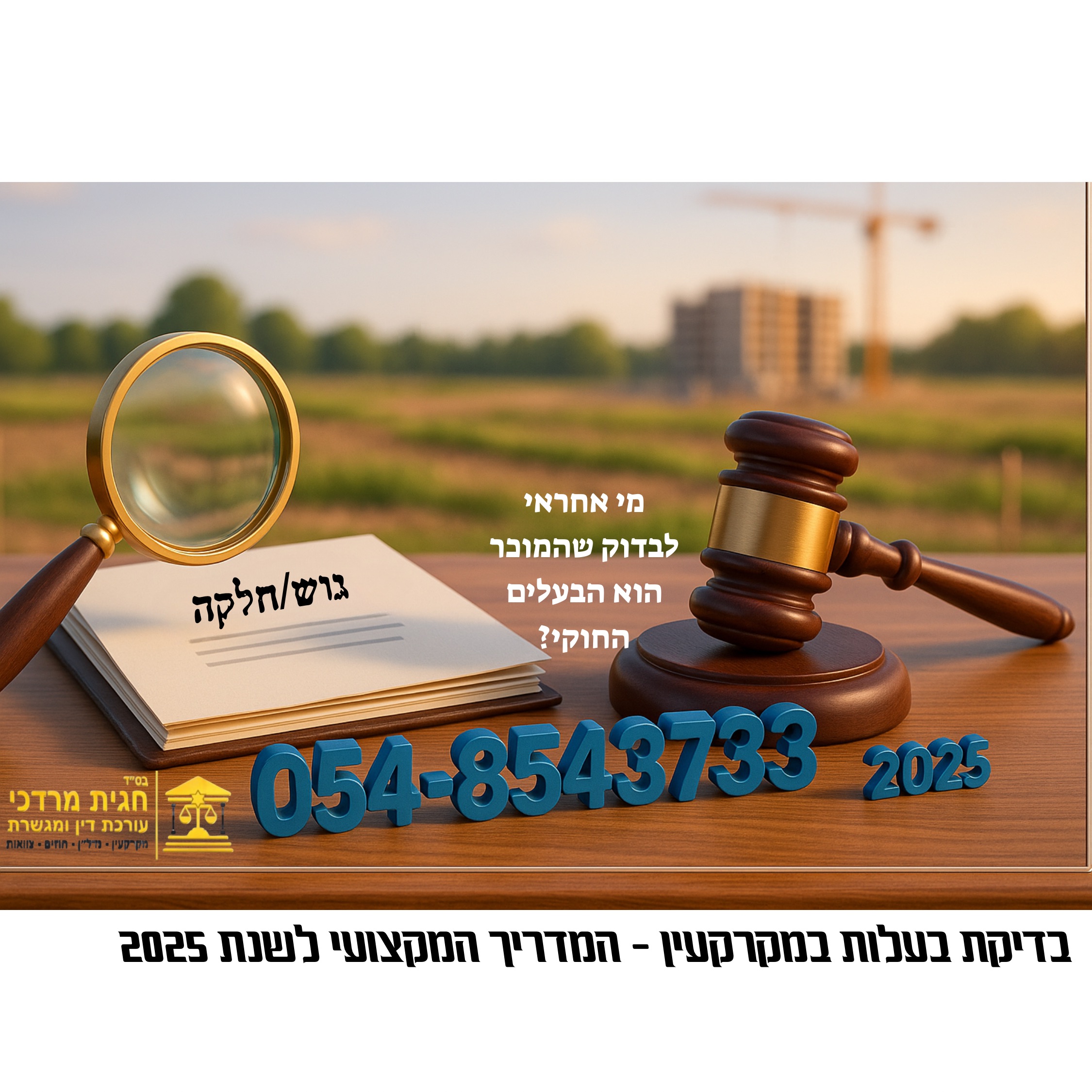 בדיקת בעלות במקרקעין היא הצעד החשוב והקריטי ביותר בכל עסקת נדל"ן בישראל – דירה, קרקע או נכס מסחרי. במדריך זה תמצא הסבר מפורט, עדכני ומבוסס, כיצד לבצע בדיקת בעלות, מהם הסיכונים הקיימים, דוגמאות מהשטח, המלצות פרקטיות ודרכי פעולה על פי כללי אתיקה, חוק ומשפט עדכניות.